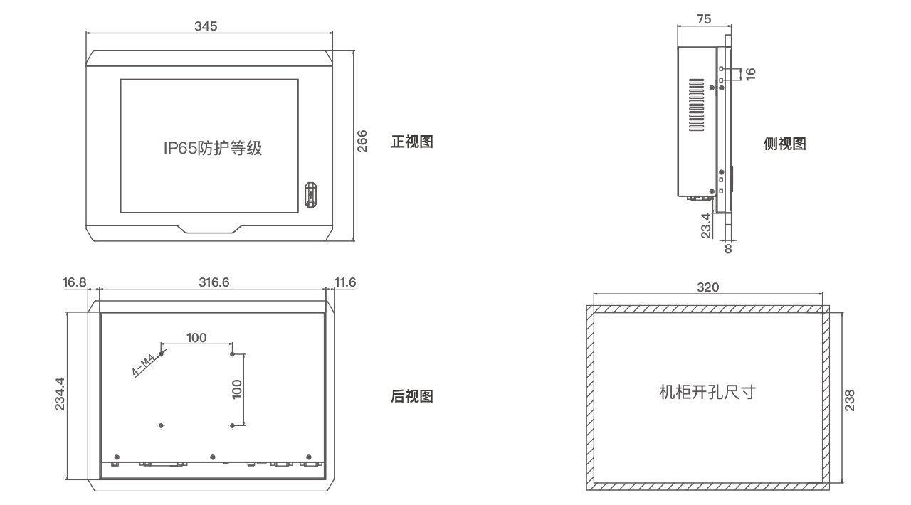 面板材質(zhì):全平面IP65防護,鋁鎂合金
