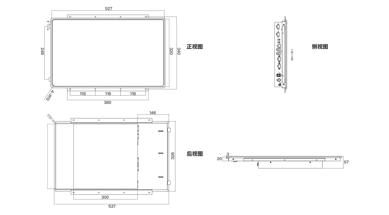 整機尺寸:(L×H×T):536.8×328.3×56.9mm