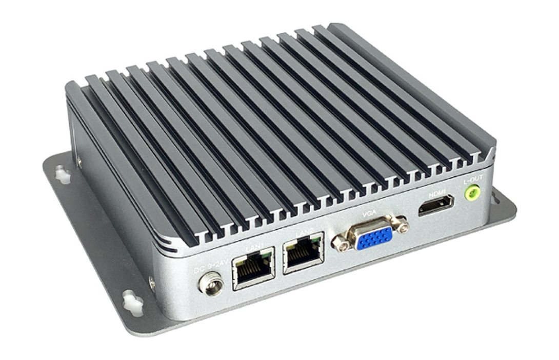 后面板I/O端口:1個DC9-24V電源輸入接口,2個RJ45網口,1個VGA,1個HDMI, 1個Audio